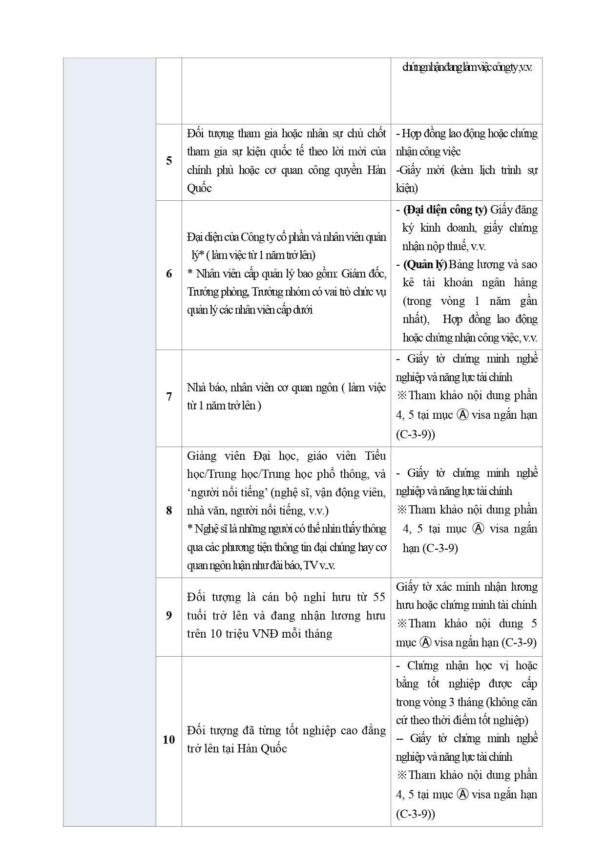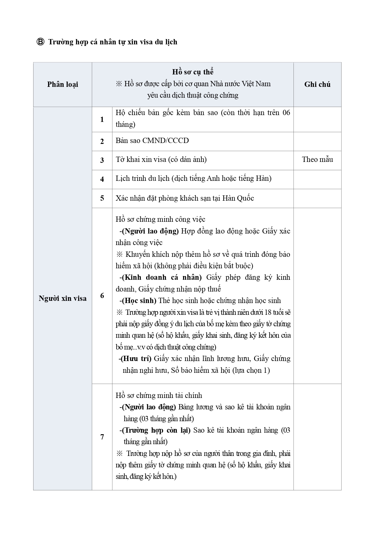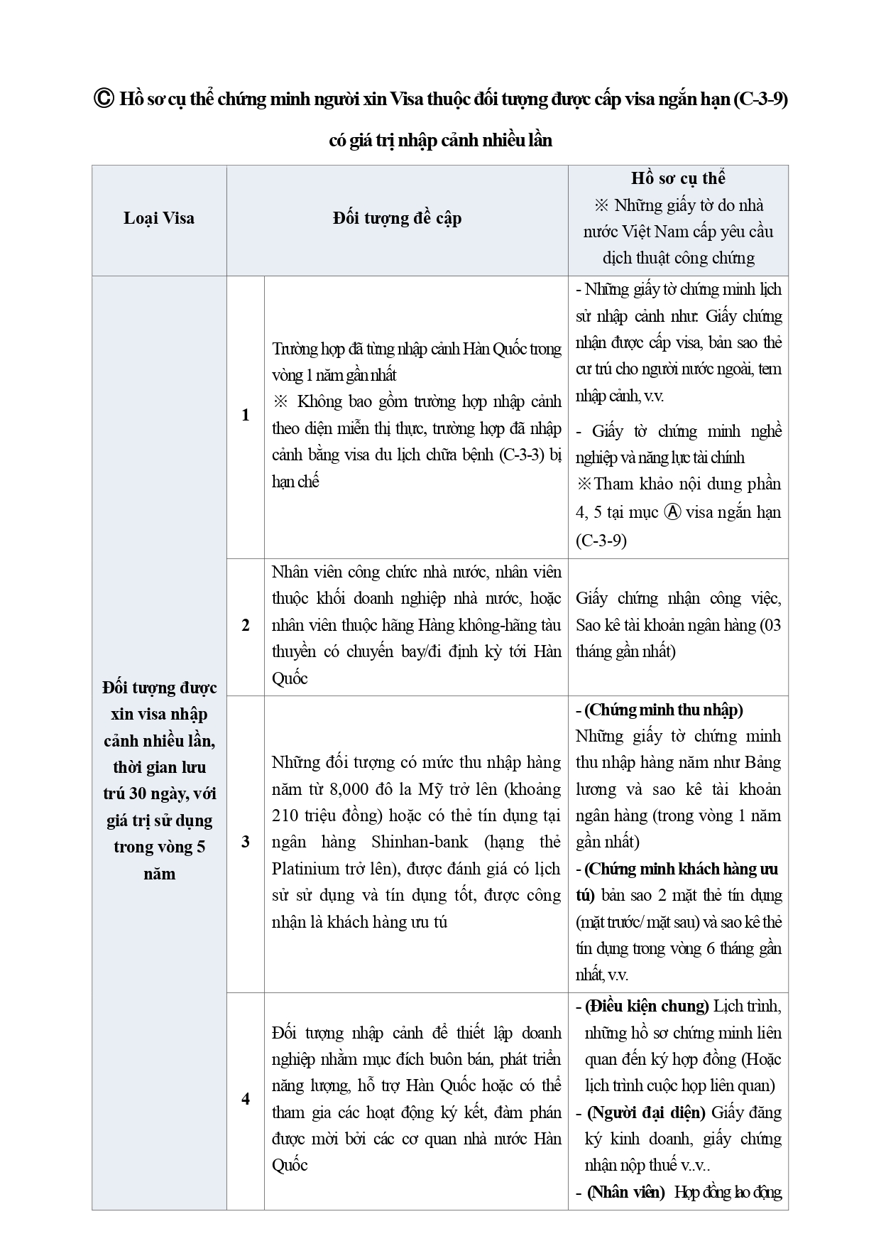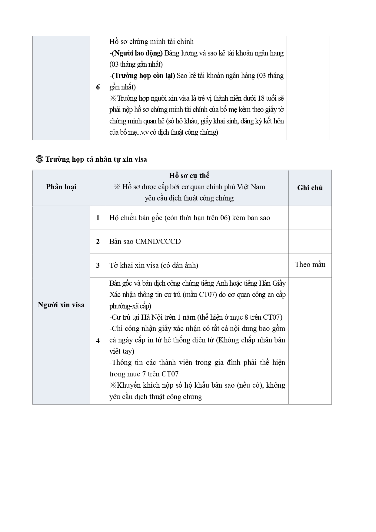thay các giấy tờ chứng minh tài chính bằng văn bản của cơ quan Hàn Quốc.