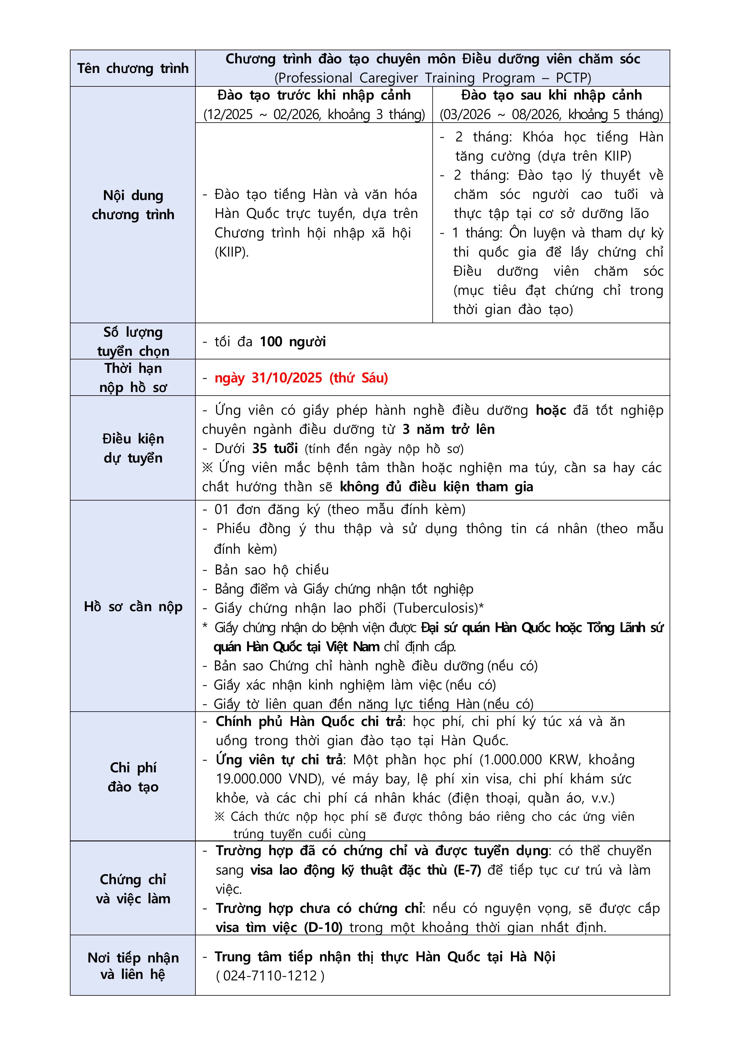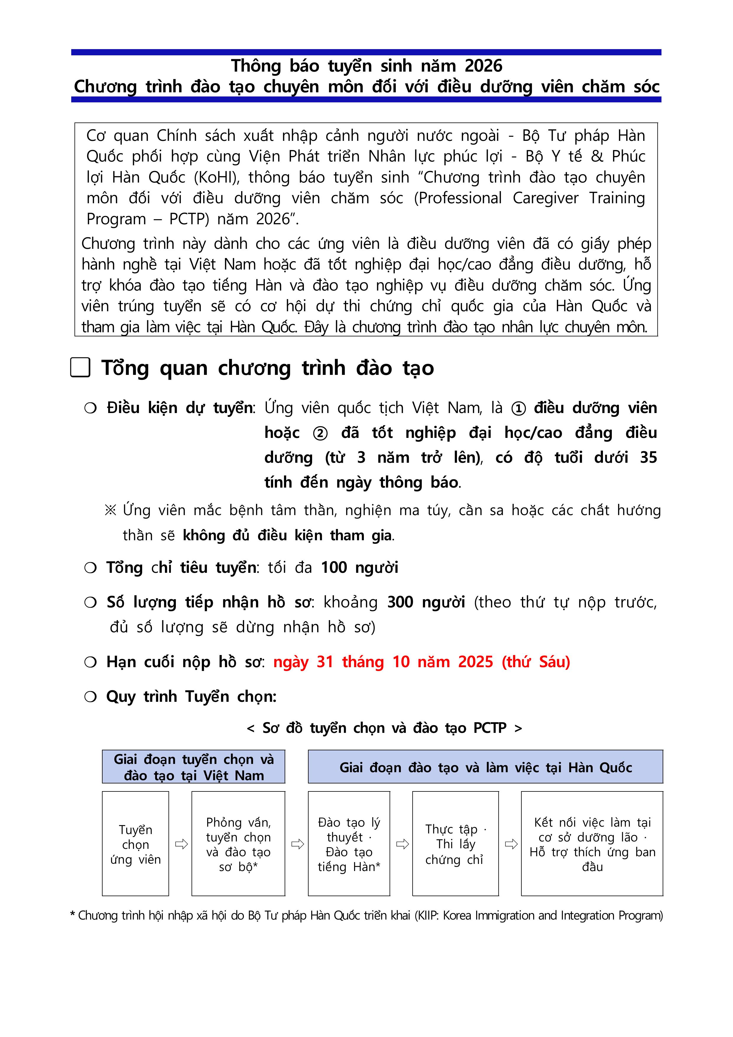 Thông báo tuyển sinh năm 2026 - Chương trình đào tạo chuyên môn đối với điều dưỡng viên chăm sóc